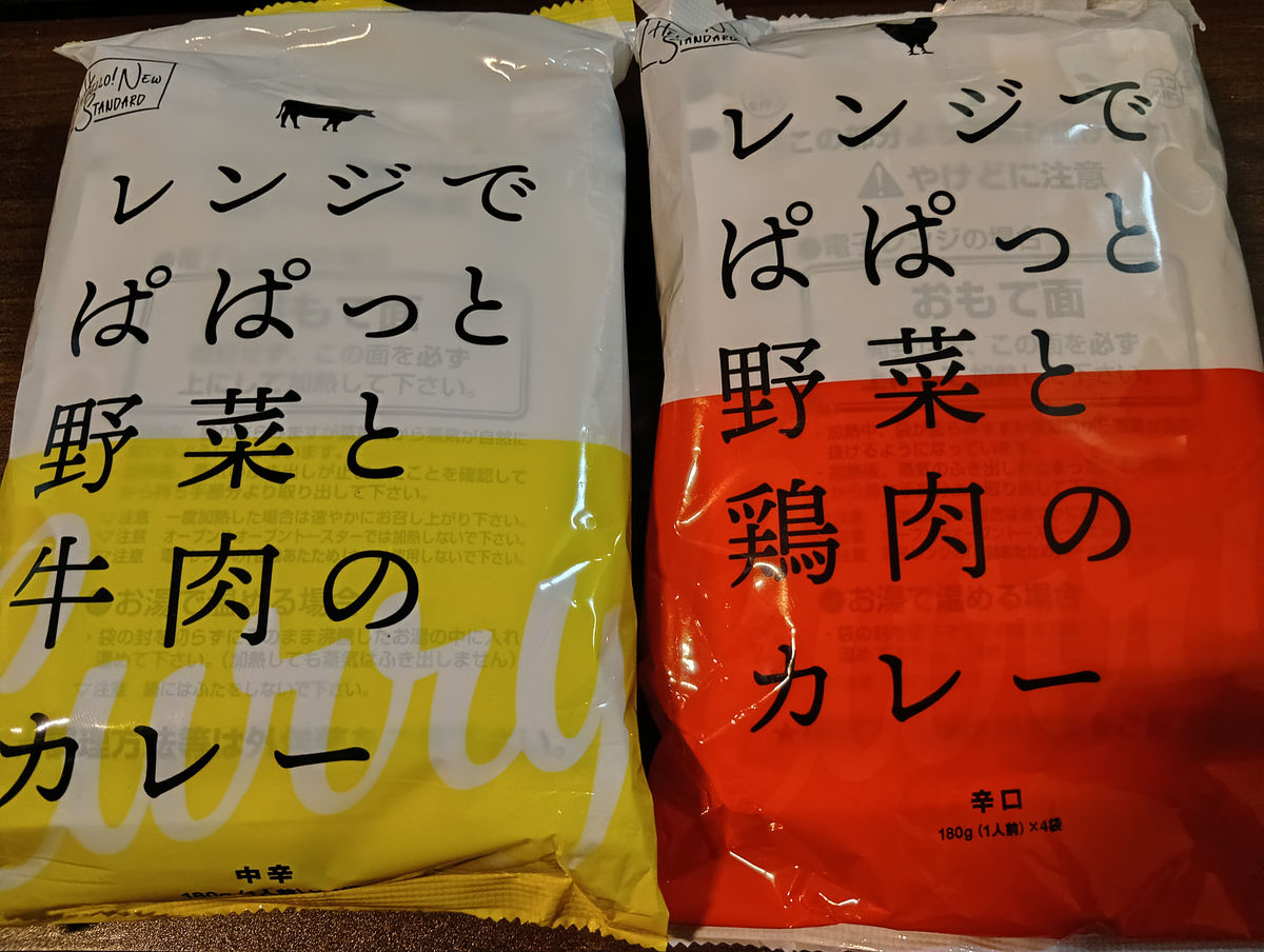 「レンジでぱぱっと 野菜と牛肉のカレー(中辛)」と「レンジでぱぱっと 野菜と鶏肉のカレー(辛口)」、両方とも少し気になった点がありました。