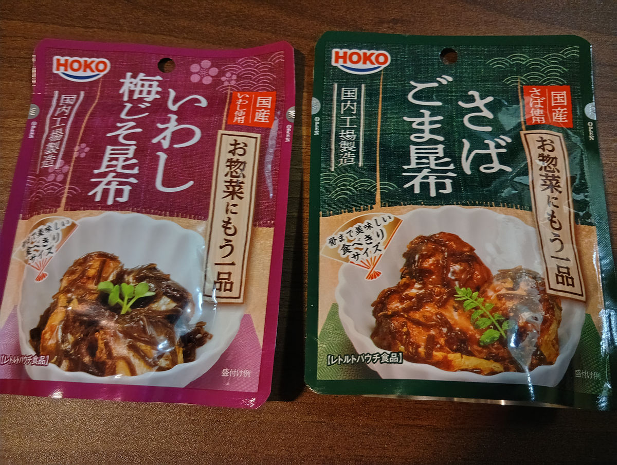 その中でも、宝幸の「さばごま昆布」と「いわし梅じそ昆布」は、どちらも和風寄りの味つけで、普段の食事に合わせやすそうだと感じました。